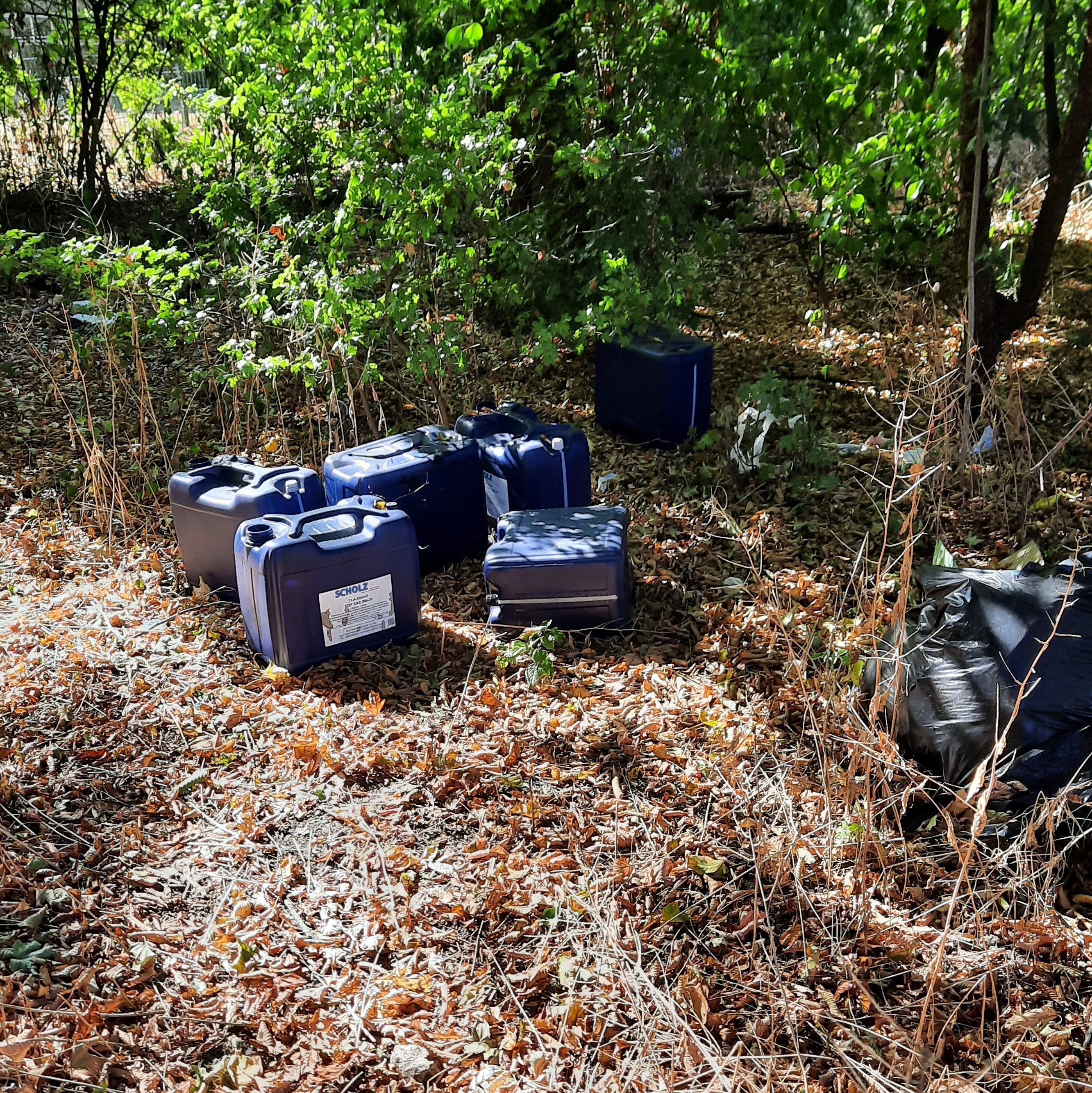 Nicht erstmalig entdeckte ein Spaziergänger erneut unverschlossene 10 Liter Ölkanister in der Rheinaue Friemersheim. (insgesamt ca. an die hundert Liter)
